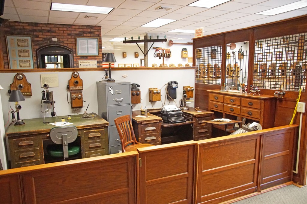 The Gridley Telephone Museum, in Gridley, IL, contains an amazing display of memorabilia that reflects the evolution of communication services in rural Illinois. Construction began in 2000 and was completed in 2001. All of the telephones, records, equipment, and other artifacts were moved into the new building. Many hours of arranging, assembling and careful placement of all of these things has now been completed and the Gridley Telephone Museum is a reality! It officially opened on July 15, 2002. It is housed in a beautiful building, which was designed by Gary Hocker, a local architect. Mr. Hocker also designed many of the displays and the cases housing the historical items and articles. The building contains the historic telephone collection of Rogers Kaufman. This collection includes working models of many of the nation’s early phones, a fully-functioning “hands on” switchboard, and a rich array of artifacts that will appeal to tourists of all ages. It is located on Center Street, adjacent to the Gridley Public Library, in downtown Gridley.